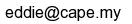 Description : Company Particular| Company : | Cape Manufacturing (Malaysia) Sdn. Bhd. | | Fax : | 07-3312055 | | Address : | NO 22 , LOT 1582 , JALAN TEMENGGONG 2 , KAWASAN PERINDUSTRIAN TEMENGGONG , MUKIM TERBAU , 81100 JOHOR BAHRU,JOHOR, MALAYSIA | | Email : |  | | Website : | http://cape.my |