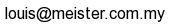 Height : 133mm Company ParticularCompany : | Meister Plastic Industries (M) Sdn Bhd | Fax : | 03-7845 8327 | Address : | No. 140-B-2, Lorong 10D, Kampung Baru Subang, 40150 Shah Alam, Selangor Darul Ehsan | Email : |  | Website : | http://meister.com.my |