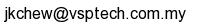 Company ParticularCompany : | VSP Technology | Fax : | 607-8674899 | Address : | No. 31, Jalan Maju 5,
